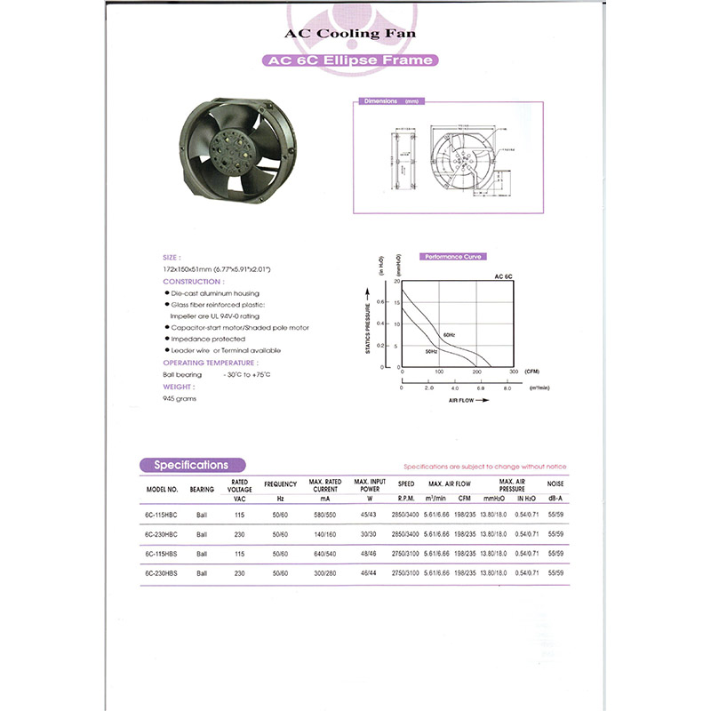 6C-380HB臺灣百瑞全系列軸流風扇